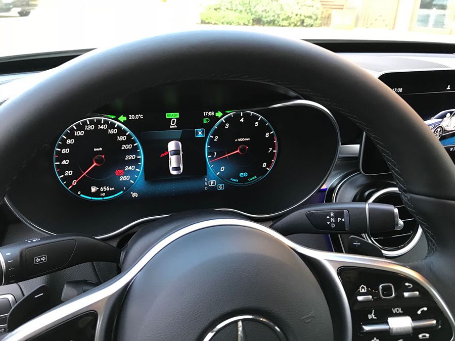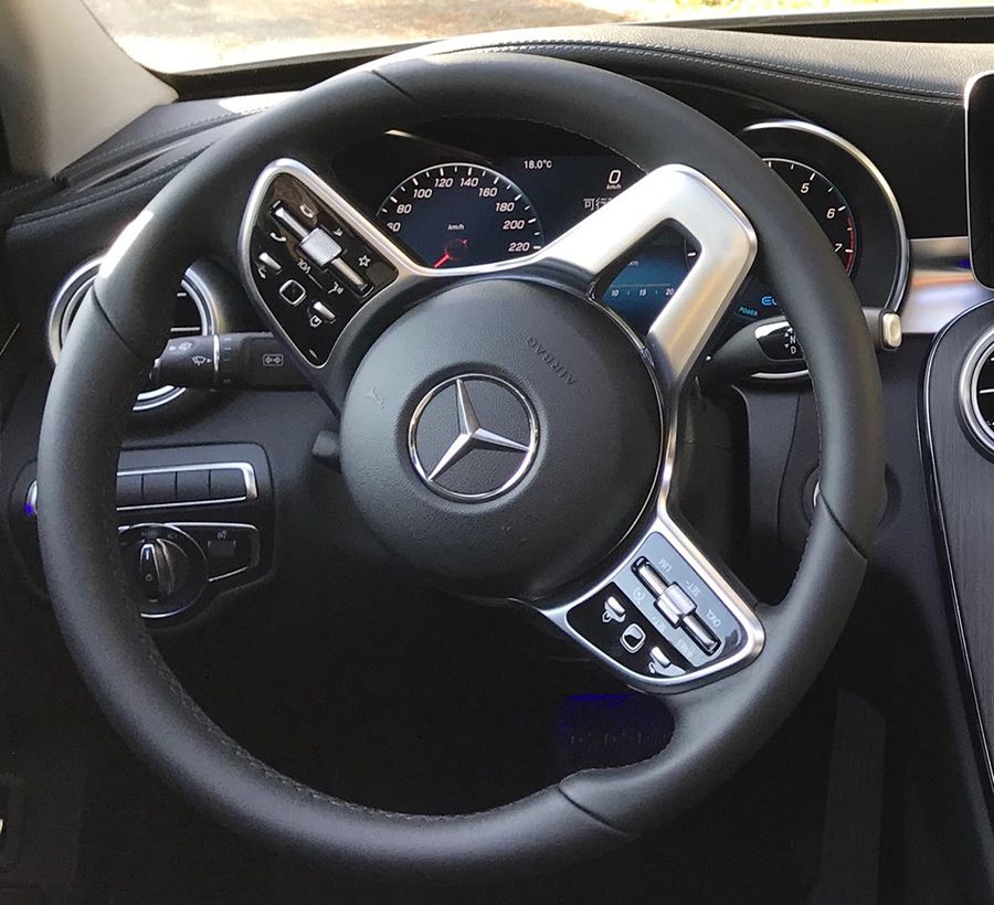 方向盘采用了三幅式设计且加入了镀铬装饰,整体造型相比老款更加硬朗。多功能按键布局也有调整还增加了触控的按键。普通车型雨刮器的位置是奔驰标志性的怀挡,并提供了换挡拨片。