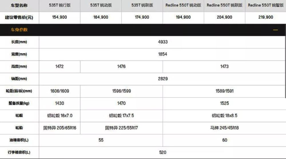 以Redline550T锐智版,也便是2.0T顶配车价核算: