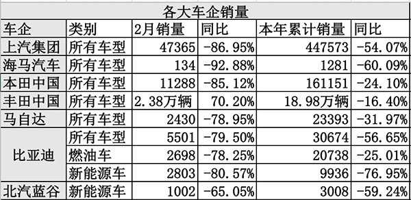 2月车企销量齐跌