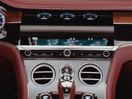 可三面翻转的中控面板,完成12.3英寸中控屏、三模仿表盘(从左往右分别为时钟、指南针以及外部温度)和融入布景板的木纹面板三者之间切换,逼格满满。